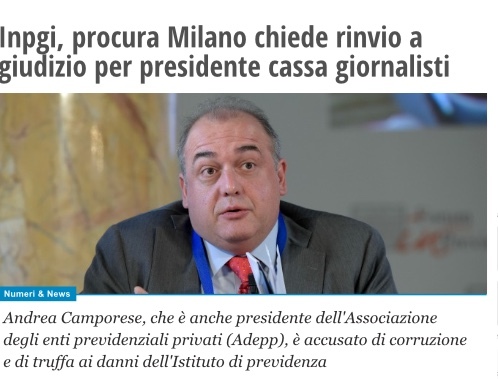 Nelle stesse ore in cui viene chiesto un rinvio a giudizio, per i reati di truffa e corruzione, del presidente dell’Inpgi Andrea Camporese, l’Istituto di previdenza dei giornalisti che lui dirige dice due volte “no” alla domanda di trasparenza inoltrata nelle scorse settimane dai suoi iscritti. No all’accesso al verbale della seduta in cui il Cda ha deliberato un taglio delle pensioni. No all’accesso al testo integrale della delibera.