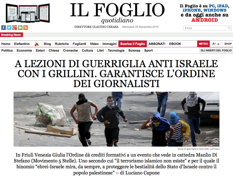 il foglio Pubblicato 25 novembre 2015 su 911 × 697 in In Friuli giornalisti a lezione dai grillini: “Lo Stato d’Israele è una bestialità” Successivo →