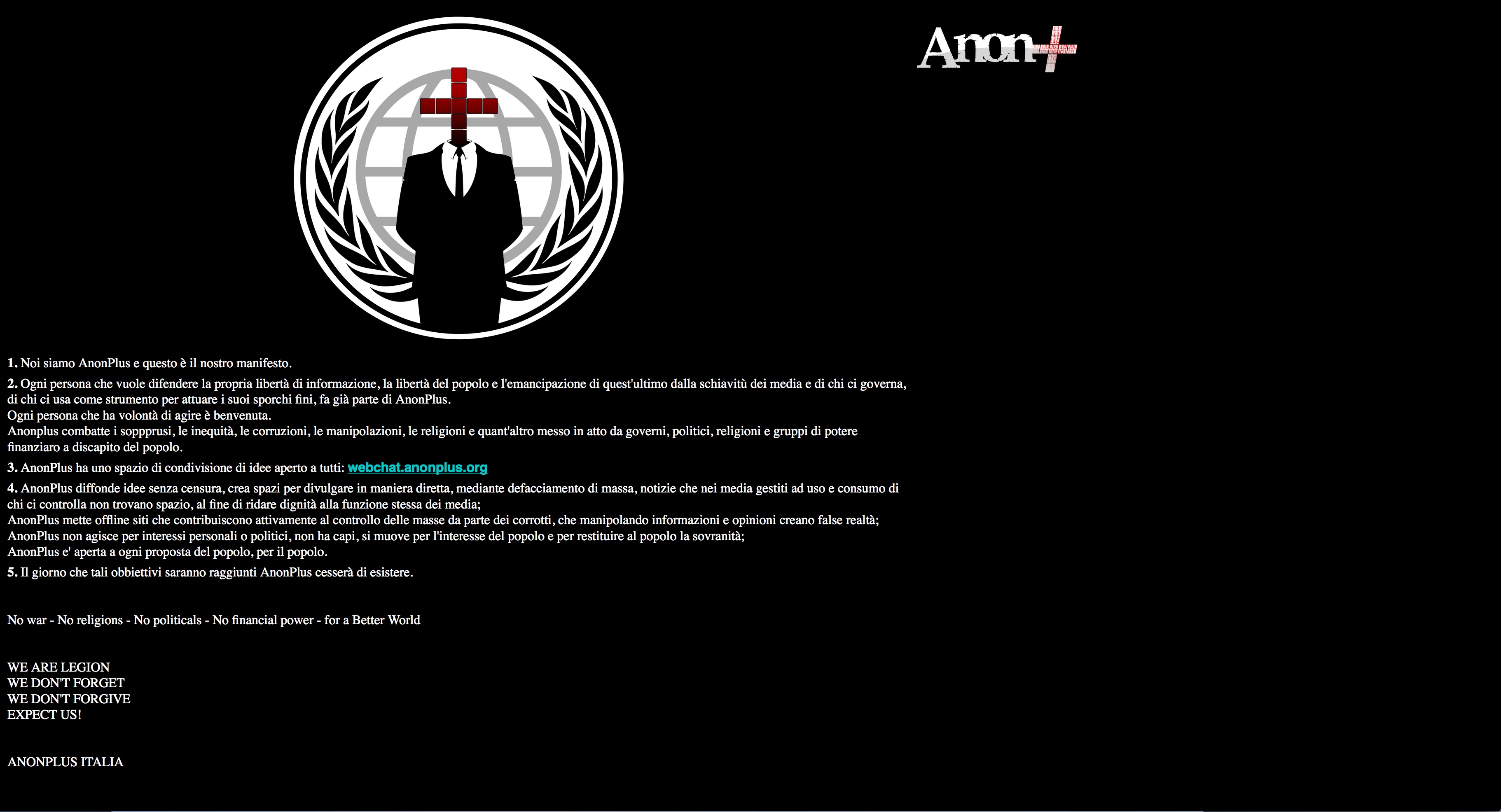 sito Pubblicato 5 aprile 2016 su 3644 × 1972 in Gli hacker attaccano il sito dell’Ordine dei giornalisti del Piemonte. Firmato AnonPlus, il social di Anonymous