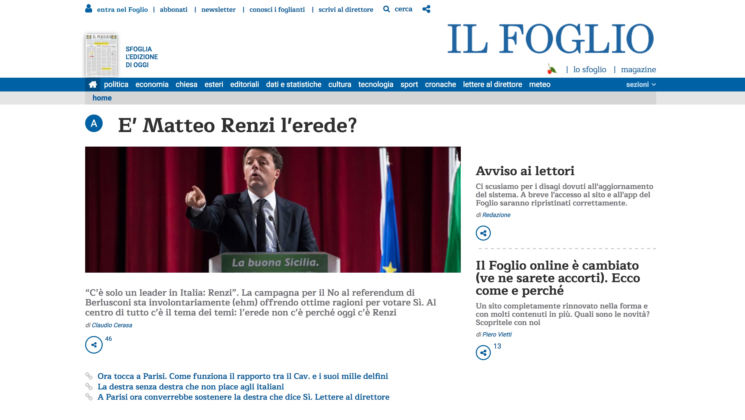 il-foglio Pubblicato 17 novembre 2016 su 2975 × 1676 in “Un salutare bagno d’inchiostro”. Il Foglio online da oggi si rinnova