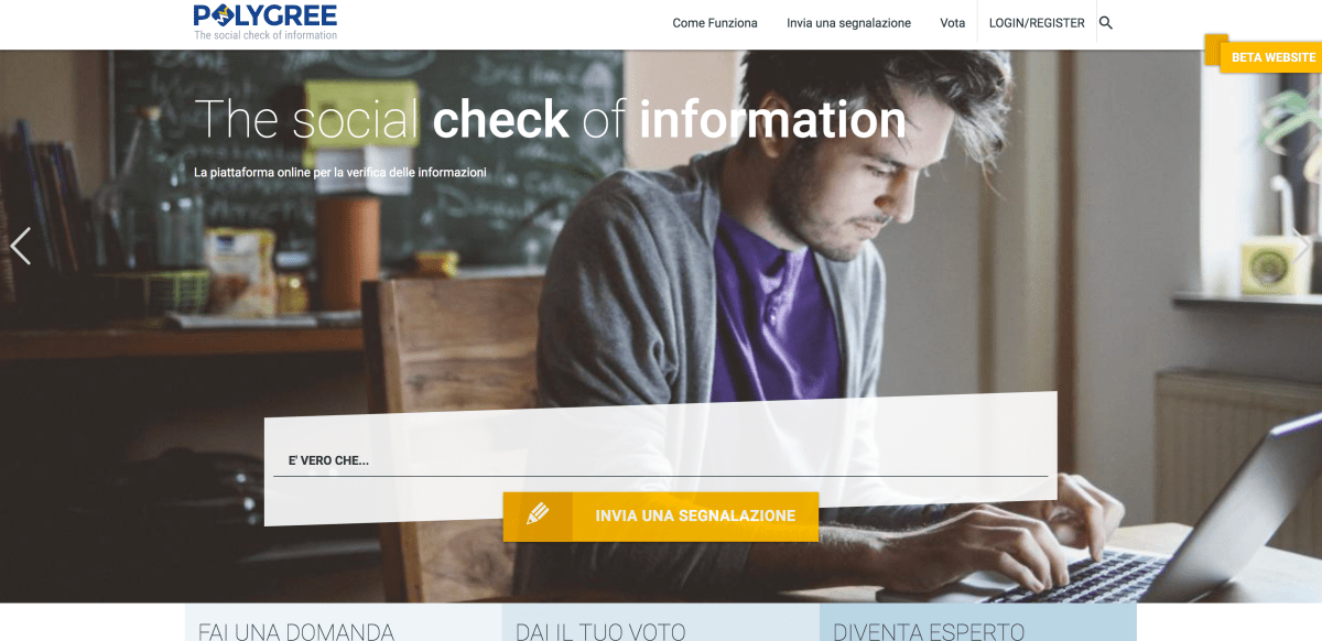polygree Pubblicato 30 novembre 2016 su 3447 × 1673 in Nasce un social network italiano che certifica se una notizia online è vera o falsa. Con una prova scientifica
