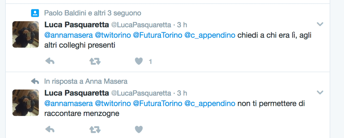pasquaretta Pubblicato 28 febbraio 2017 su 1249 × 501 in Scontro studenti del master di giornalismo Vs staff sindaca Appendino ← Precedente Successivo →