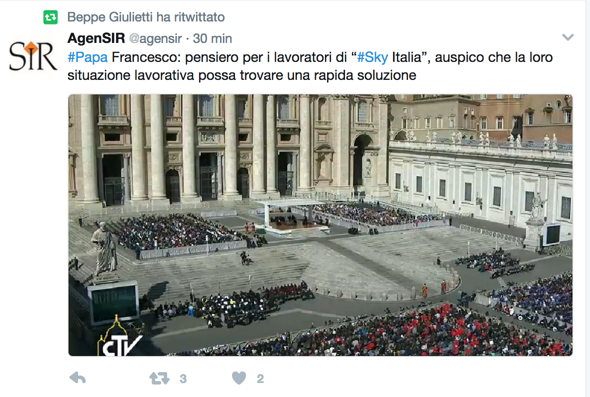 sky Pubblicato 15 marzo 2017 su 1180 × 795 in Papa Francesco con i dipendenti di Sky: “Auspico che la loro situazione lavorativa trovi rapida soluzione”