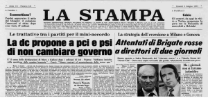 La Stampa uscì con un pezzo di spalla a tre colonne e un fondino subordinato senza firma, attribuibile quindi ad Arrigo Levi, allora direttore in via Marenco. Un articolo che ricordo ancora oggi, secco e implacabile. Quello che stupisce è che l’apertura della prima fosse dedicata interamente alla politica e ai tediosissimi accordi tra i partiti di governo. Oggi varrebbe un titolo di apertura e almeno sei pagine all’interno. Un po’ i giornalisti sono migliorati.