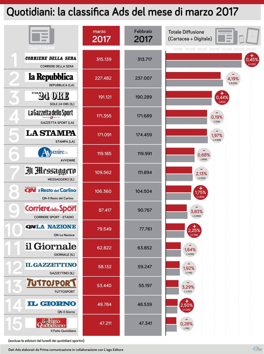 diffusione Pubblicato 10 Maggio 2017 su 900 × 1204 in Diffusione quotidiani carta+web a marzo, perdono tutti. Eccetto Il Corriere della Sera e Il Sole 24 Ore