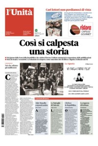 L’Unità ha sospeso le pubblicazioni per volontà dell’editore. L’ultimo numero il 2 giugno distribuito soltanto in versione .pdf. Scrive in un comunicato, qui in versione integrale e pubblicato sul giornale con il titolo “Così si calpesta una storia” l’assemblea delle redattrici e dei redattori: “Ci sono storie che non dovrebbero finire, per la storia che hanno raccontato e testimoniato, per quella che hanno cercato di capire, per chi ci ha creduto, per chi ci ha messo passione, professionalità e attaccamento. Questa storia, la nostra, hanno deciso di chiuderla nel modo peggiore, calpestando diritti, calpestando lo stesso nome che porta questa testata, ciò che ha rappresentato e ciò che avrebbe potuto rappresentare. L’editore ha comunicato, con una lettera spedita alle ore 22,49 del 1° giugno, che incontrerà la Federazione nazionale della stampa, Stampa Romana e il Cdr per illustrare la situazione economico-finanziaria del giornale e la conseguente decisione di interrompere volontariamente la pubblicazione“.