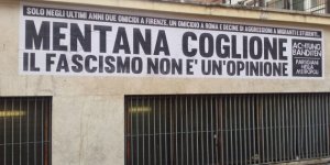 Stamane questo striscione è stato apposto davanti agli studi de La7 a Roma. La notizia l’ha data sul suo profilo Facebook Flavia Fratello, giornalista del Tg di La7. “C’era la Digos questa mattina davanti agli studi de La7. Il motivo lo vedete. Questo striscione, firmato Partigiani nella Metropoli insulta il direttore del Tg Enrico Mentana. La sua colpa? Aver accettato un confronto in programma per questa sera con CasaPound. Ma a questi signori non sta bene, e per esprimere il loro dissenso non hanno trovato di meglio che offendere. Segno di pochezza intellettuale, di scarsità di argomenti, ma non solo. Impedire il confronto significa mettersi allo stesso livello di chi si vuole contrastare. Non è certo una novità, basta saperlo”.