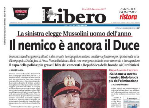 libero Pubblicato 8 dicembre 2017 su 485 × 350 in La foto di Mussolini in prima pagina per sminuire il blitz fascista a Repubblica. Libero supera se stesso