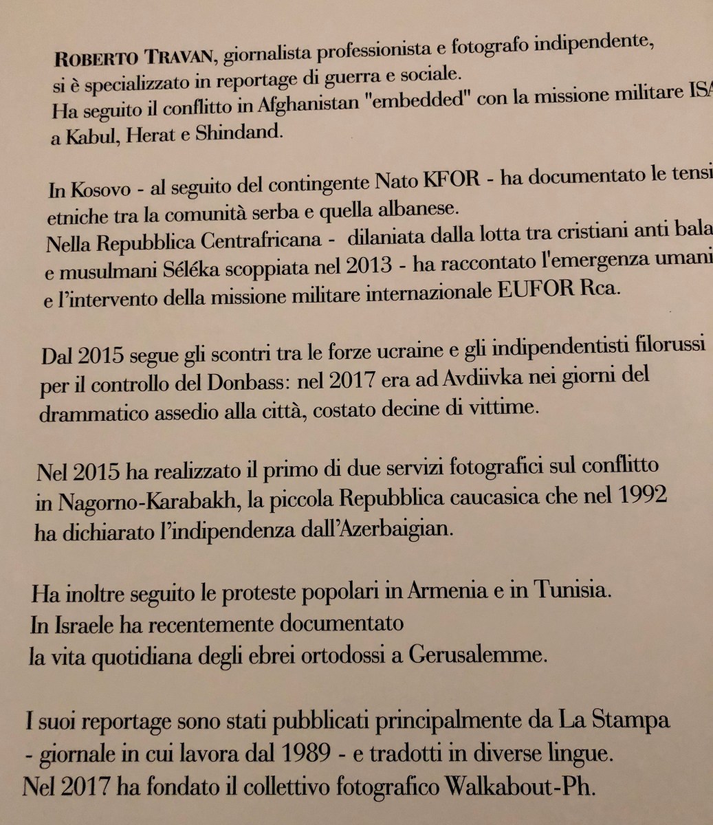 travan Pubblicato 1 marzo 2018 su 2937 × 3400 in C’è un filo conduttore che unisce le guerre nel mondo. Due fotoreporter torinesi lo hanno trovato. Inaugurata una straordinaria mostra fotografica al Museo del Risorgimento Successivo →