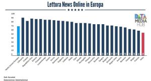 DataMediaHub di Pier Luca Santoro pubblica qui un interessante pezzo sulla diffusione che hanno in Europa le notizie su internet. L’Italia è l’ultimo dell’Europa allargata a 28 Paesi. Gli italiani sono, cioè, quelli che s’informano meno su quello che accade nel mondo consultando i siti dei giornali online. Il report è del Digital economy & society in the Eu 2018 edition.