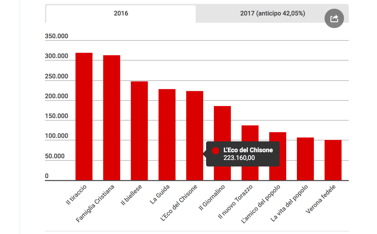 finanziamenti 2 Pubblicato 24 ottobre 2018 su 1553 × 967 in Finanziamenti pubblici ai giornali. Quanto risparmierà lo Stato. Le cooperative che ne hanno beneficiato. Numeri, tabelle e infografica ← Precedente Successivo →