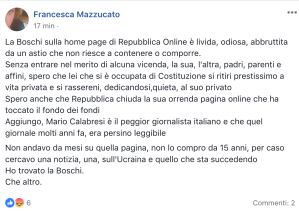 E poi: “Spero anche che Repubblica chiuda la sua orrenda pagina online che ha toccato il fondo dei fondi”.