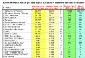Il Corriere della Sera al settimo posto viene superato da Il Fatto Quotidiano. Tra i grandi quotidiani la peggior prestazione è quella de La Stampa che non va oltre la 20esima posizione, preceduta anche da Libero e da numerosi siti nati con la rete negli ultimi anni. I Quotidiani Gedi sono addirittura al 22° posto.