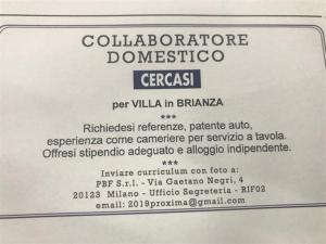 Sembra all’apparenza un normale annuncio pubblicitario. In realtà gli interessati a quel posto di lavoro dovrebbero inviare il loro curriculum proprio alla sede del Giornale, cioè in via Gaetano Negri 4 a Milano. Forse ci potrebbe stare anche questo. Tuttavia, quello che ha fatto incazzare la redazione è che da una parte l’editore ha chiesto un taglio delle retribuzioni del 30% (a dicembre per questo ci sono stati 5 giorni di sciopero). Mentre dall’altra qualcuno all’interno dell’editrice cerca un maggiordomo per una villa in Brianza. Chi non si sa, per ora.