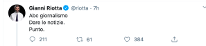 Sarzanini ha fatto benissimo a dare quella notizia. Come Gianni Riotta ha twittato: “Abc del giornalismo. Dare le notizie. Punto”. E’ esattamente l’essenza di questa professione.