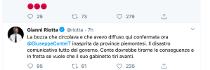 E conferma Gianni Riotta: “Il disatro comunicativo tutto del governo. Conte dovrebbe tirare le conseguenze e in fretta se vuole che il suo gabinetto tiri avanti”.