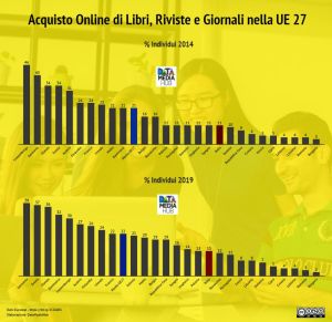 “Dopo che all’inizio di Agosto avevamo pubblicato i dati che vedono l’Italia davanti solamente alla Romania per quanto riguarda la lettura di quotidiani online nella UE27, oggi i dati relativi all’acquisto online di libri, riviste e giornali.