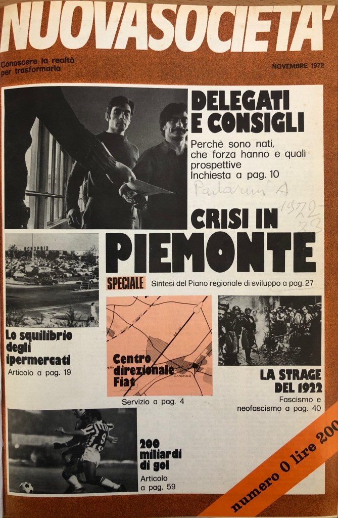 Entrano perciò la collezione completa di Nuova Società dallo storico primo numero del 1972, con l’editoriale del direttore Diego Novelli, fino alla fine del 1979 con la direzione di Saverio Vertone.