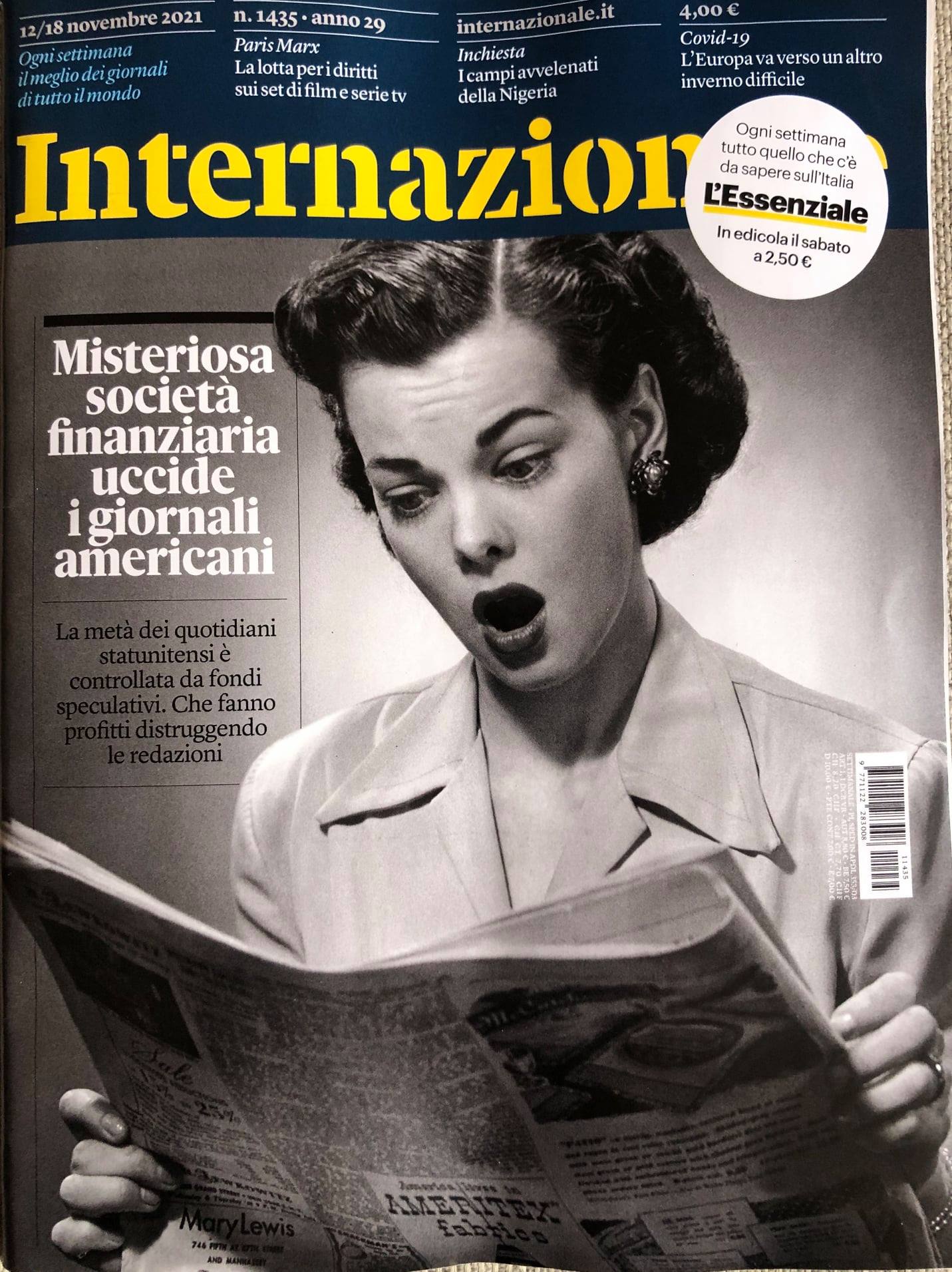 Poi leggo il magnifico reportage, pubblicato questa settimana da Internazionale, e mi deprimo definitivamente. Secondo l’inchiesta di McKay Coppins di The Atlantic la metà dei quotidiani Usa è controllata da fondi speculativi, che fanno profitti distruggendo le redazioni. Scrive Coppins: “Con conseguenze gravi per la società e la democrazia”.
