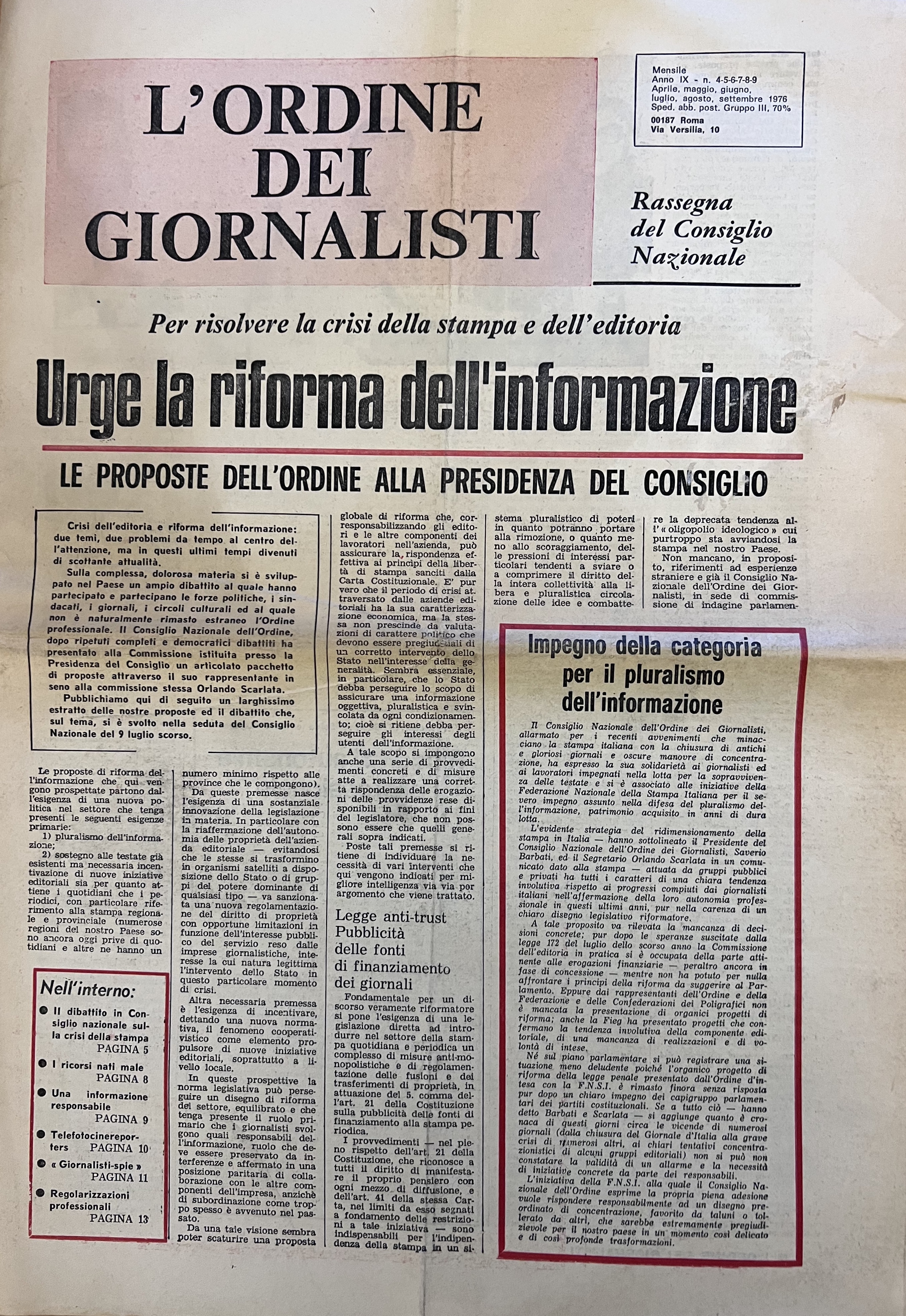 Dall’archivio storico del Centro Studi sul giornalismo Pestelli ho tratto un paio di immagini che fotografano la professione negli anni Settanta e Ottanta. Che cosa è cambiato? A quanto pare poco. Qualcuno si domandava già allora se non fosse il caso di abolire l’Ordine dei giornalisti, esattamente come adesso. Altri invocavano la riforma della professione, mai compiuta nemmeno ora. Sono trascorsi quasi 50 anni e ancora ci facciamo le stesse domande. Da apprezzare a quel tempo la costanza sui rinnovi dei contratti nazionali, magari non esattamente alla scadenza, ma prima o poi ci si arrivava. E quel Codice di autodisciplina pubblicitaria voluto dagli editori, forse un po’ ambiguo ma che metteva nero su bianco un tema delicato dell’informazione.