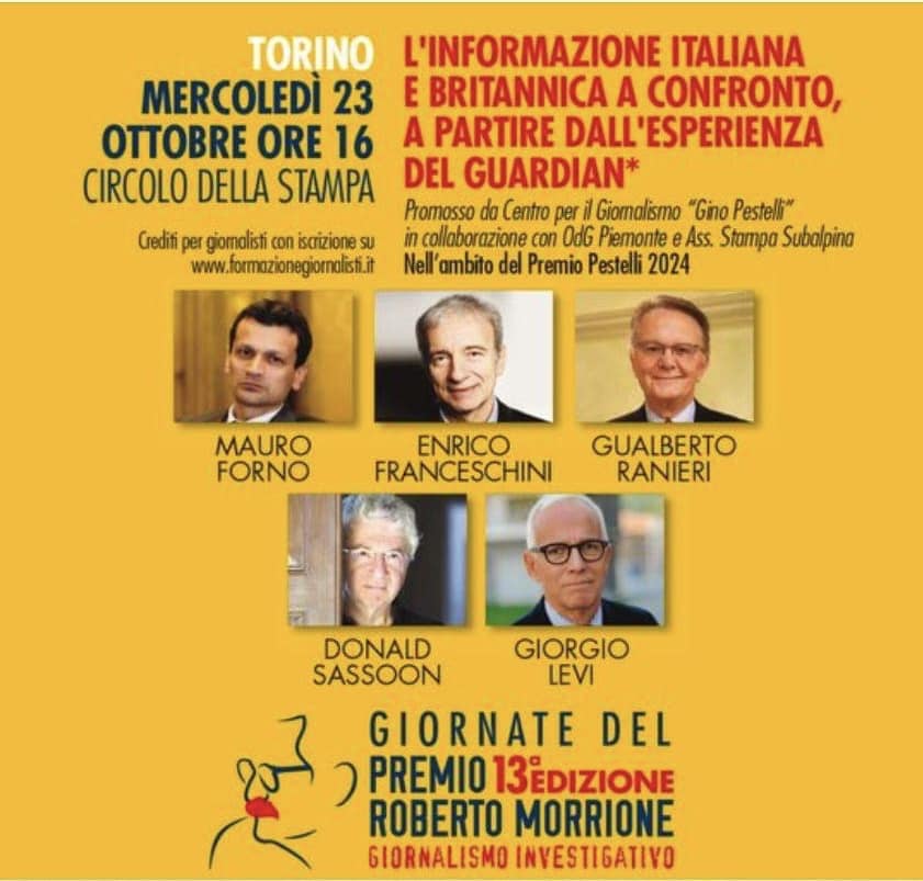 Eccezionale appuntamento, a cura dell’Ordine dei giornalisti del Piemonte, mercoledì 23 alle 16 al Circolo della Stampa di Torino (Palazzo Ceriana Mayneri, corso Stati Uniti 27) nella serata di consegna del Premio Pestelli.
