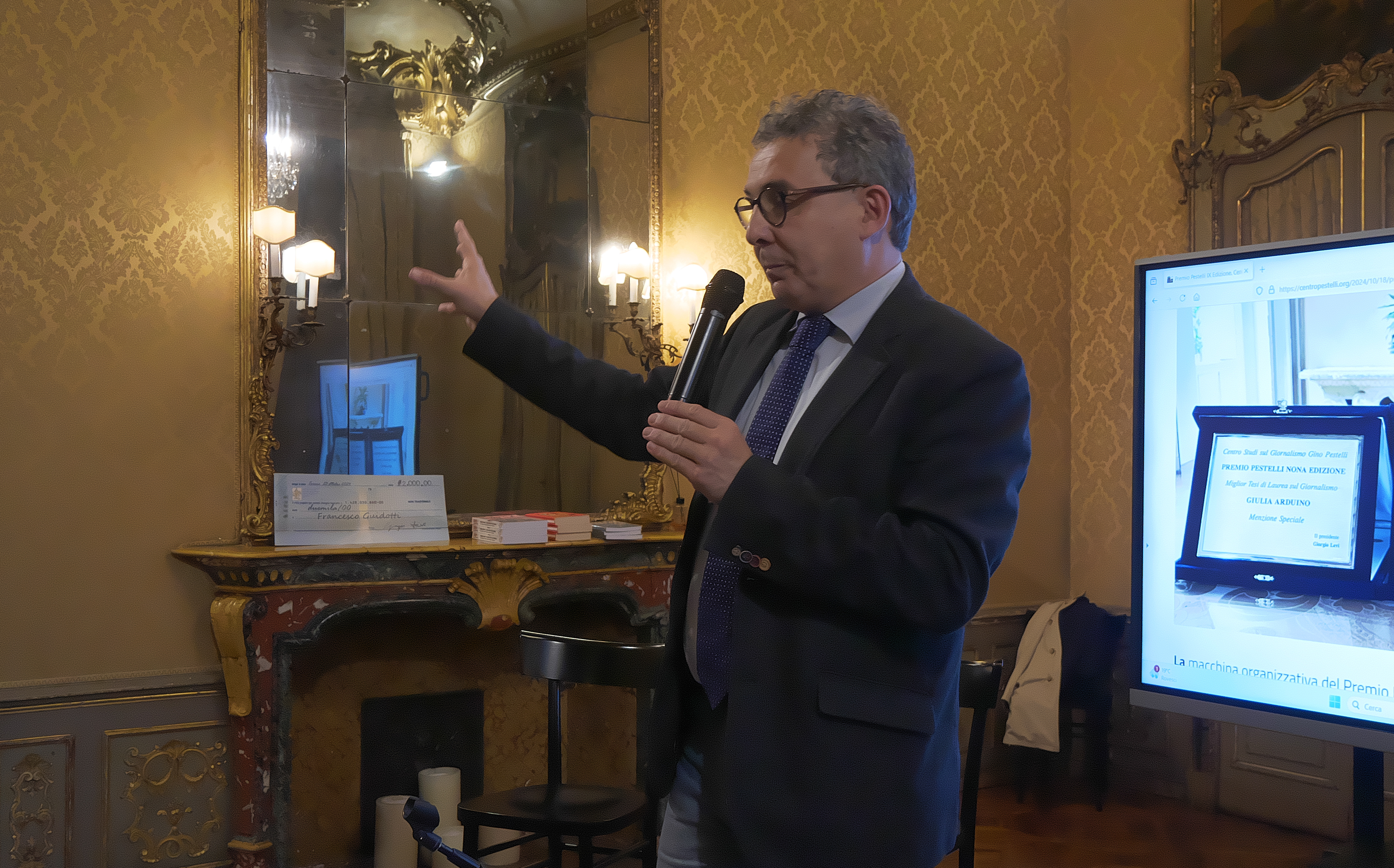 Premio Pestelli 2024. Il servizio video e le fotografie della cerimonia di consegna dei riconoscimenti al Circolo della Stampa Pubblicato su 25 ottobre 2024 da giorgiolevi Lascia un commento Ecco il video, pubblicato sul canale YouTube del Centro Studi sul giornalismo Pestelli, della serata di consegna della IX Edizione del Premio. Il servizio e le fotografie sono di Alessandro Valabrega. La fotogallery. Condividi: Fai clic qui per stampare (Si apre in una nuova finestra) Stampa Fai clic per condividere su Facebook (Si apre in una nuova finestra) Facebook Fai clic per condividere su X (Si apre in una nuova finestra) X Altro Fai clic per inviare un link a un amico via e-mail (Si apre in una nuova finestra) E-mail Mi piace Caricamento... Correlati