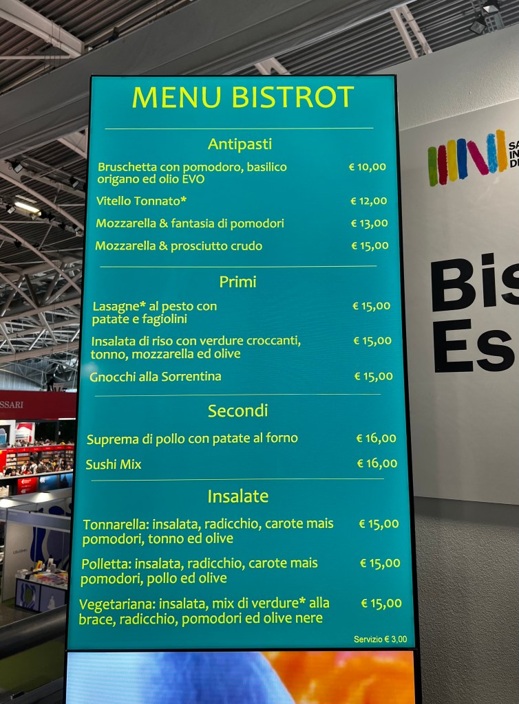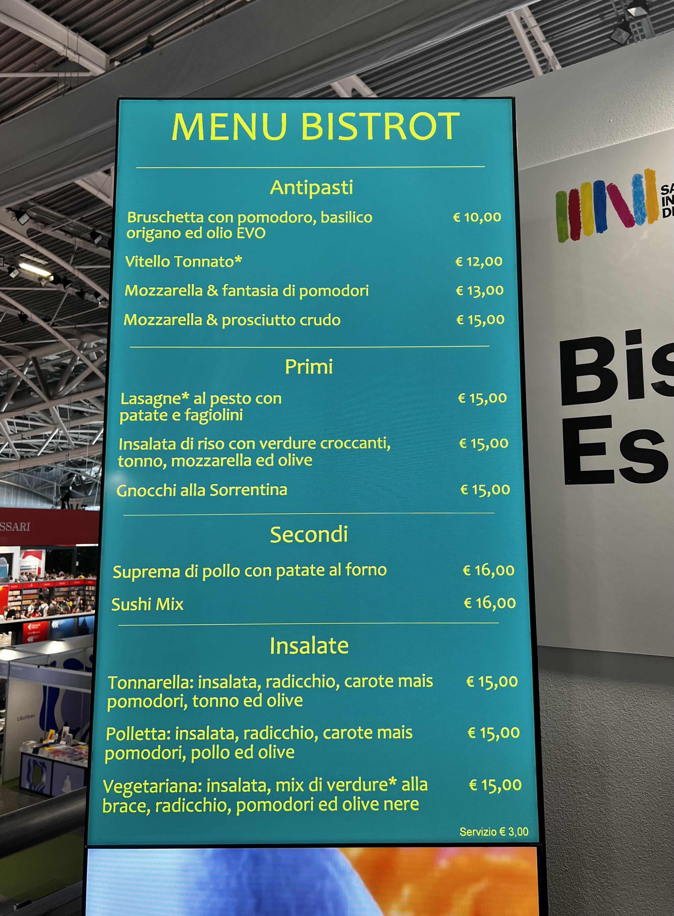 C’è ancora una annotazione. Avevo scelto per mettere qualcosa nello stomaco un banchetto di hotdog (padiglione 3, in fondo). Un morso, forse due, poi un fetente sapore di conegrina mi ha inchiodato, fortuna che ero vicino al cestino organico dove con un lancio da tre degno di Kobe Bryant ho infilato il salsicciotto infame.