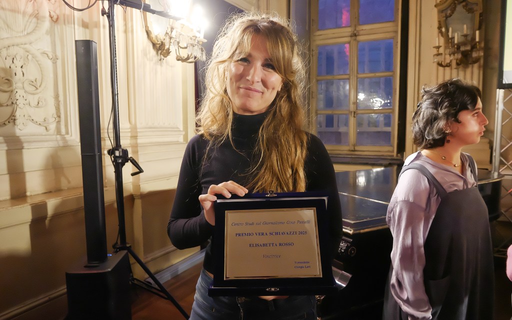 La cerimonia è proseguita con la consegna della targa a Elisabetta Rosso, giornalista di Fanpage.it ed ex allieva del Master Giorgio Bocca, vincitrice dell’edizione 2025 del Premio. Le motivazioni hanno richiamato la capacità della giovane collega di “coniugare l’utilizzo sapiente delle nuove tecnologie con i valori fondanti di Vera Schiavazzi: correttezza, continenza e verifica delle fonti“.